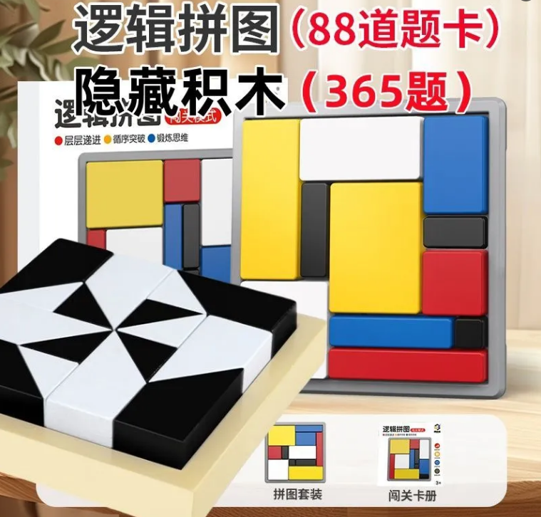 7分鐘前限時搶購 邏輯拼圖,邏輯思維訓練,積木遊戲 ,兒童益智方塊 ,親子互動,智力開發玩具 - 邏輯拼圖+隱藏積木(365關卡+16個積木) 2入组-NT$1280