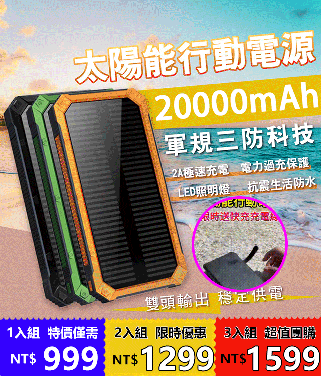 25分鐘前太陽能行動電源 - 【團購優惠】太陽能行動電源3入組僅需-NT$ 1599