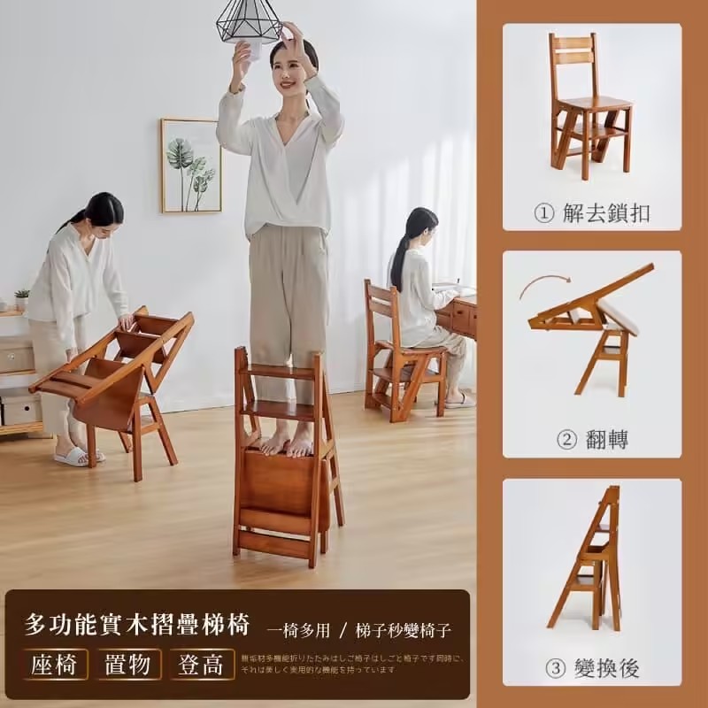 4分鐘前【現貨】二合一折疊梯子椅,木料製作,打磨精緻,可變為簡易小梯子,可幫助拿取高處物品 - 【四層|純實木|椅子秒變梯子】NT$2880
